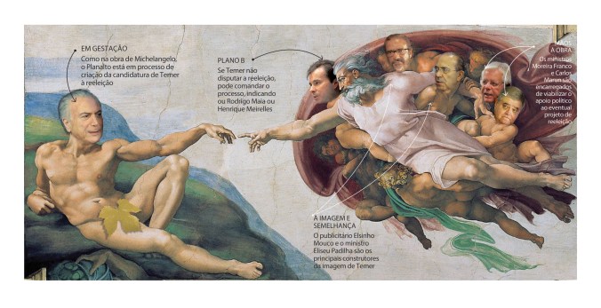 Os gestos recentes de Temer são sintomáticos. No mínimo, mesmo que não seja o candidato, ele se torna o grande motor da própria sucessão. Em outubro, o presidente foi recebido em almoço pelos herdeiros de Roberto Marinho. No domingo 7, Temer se reuniu em São Paulo com o empresário Silvio Santos, e deixou acertadas gravações na TV e no programa do apresentador Ratinho, nas quais fará a defesa de sua administração e da reforma da Previdência. Se aprová-la, poderá pavimentar o seu projeto político. Qualquer que seja ele.